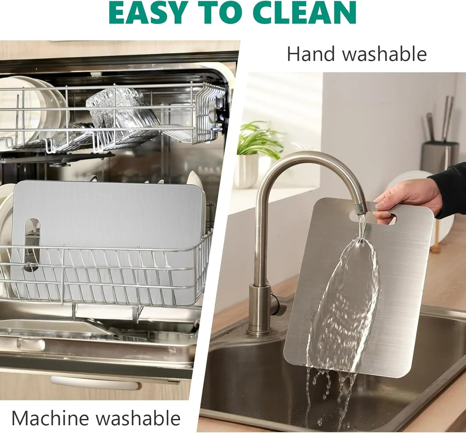 I used to hate replacing my old cutting boards every few months—wood warped, plastic stained, and they never felt hygienic. But ever since switching to this stainless steel cutting board, my kitchen feels cleaner, my food prep is easier, and honestly… it just looks so sleek on my counter!
